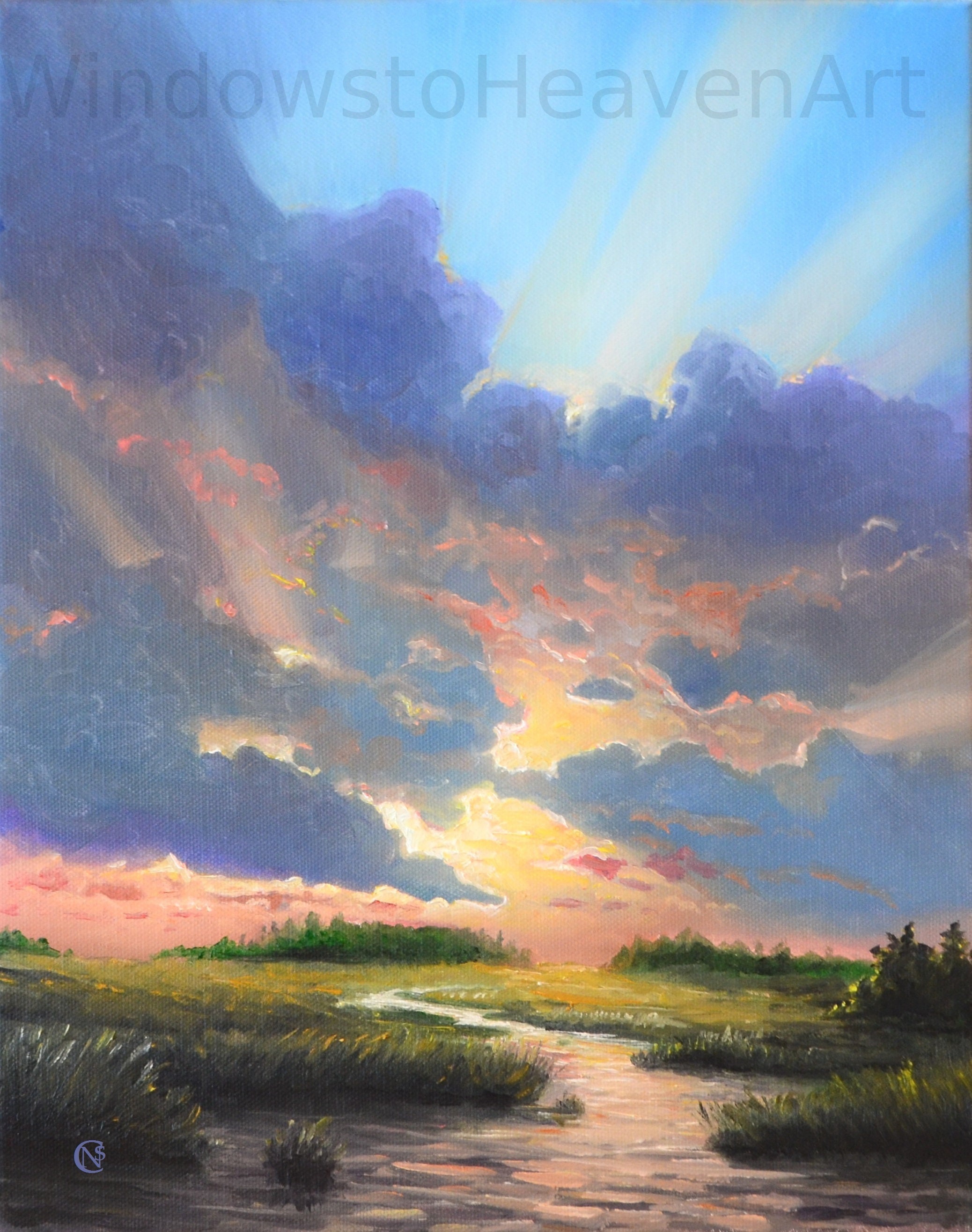 Original Sunset Sky With Stream Landscape Oil Painting Etsy